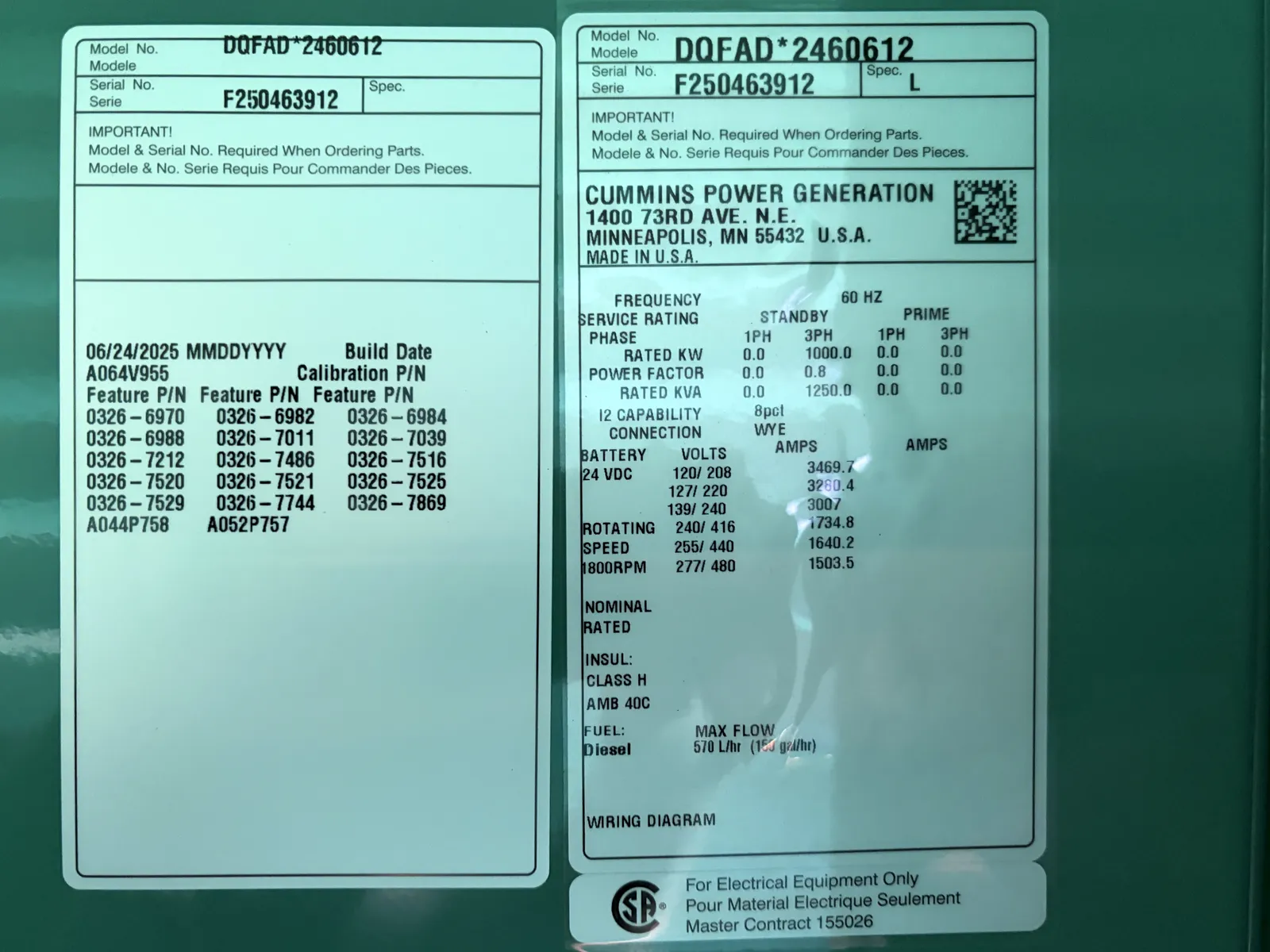 New Cummins 1000kW Diesel generator. This Standby power unit is enclosed and has approximately 1 hours of use. It provides Three-Phase power at 277/480v and will be available for purchase upon completing our 31 Point Inspection Process.