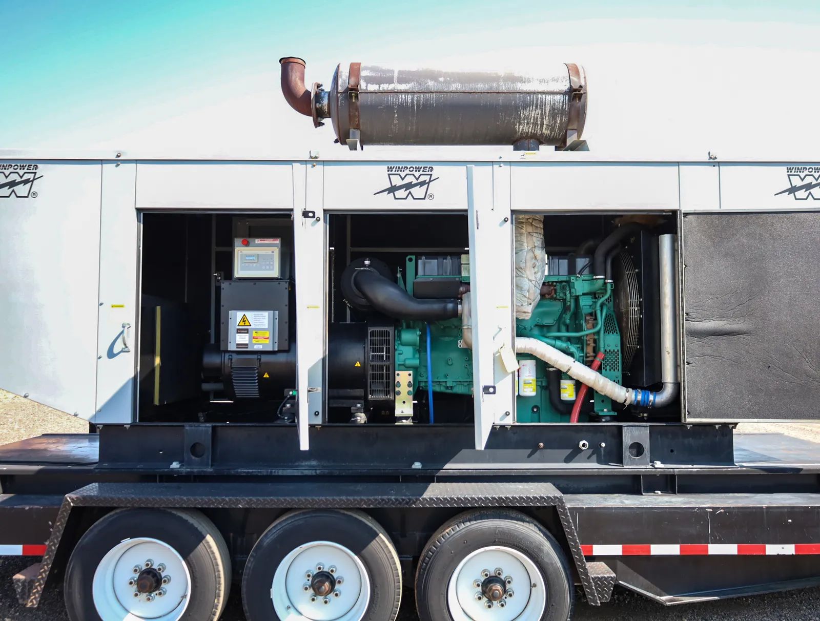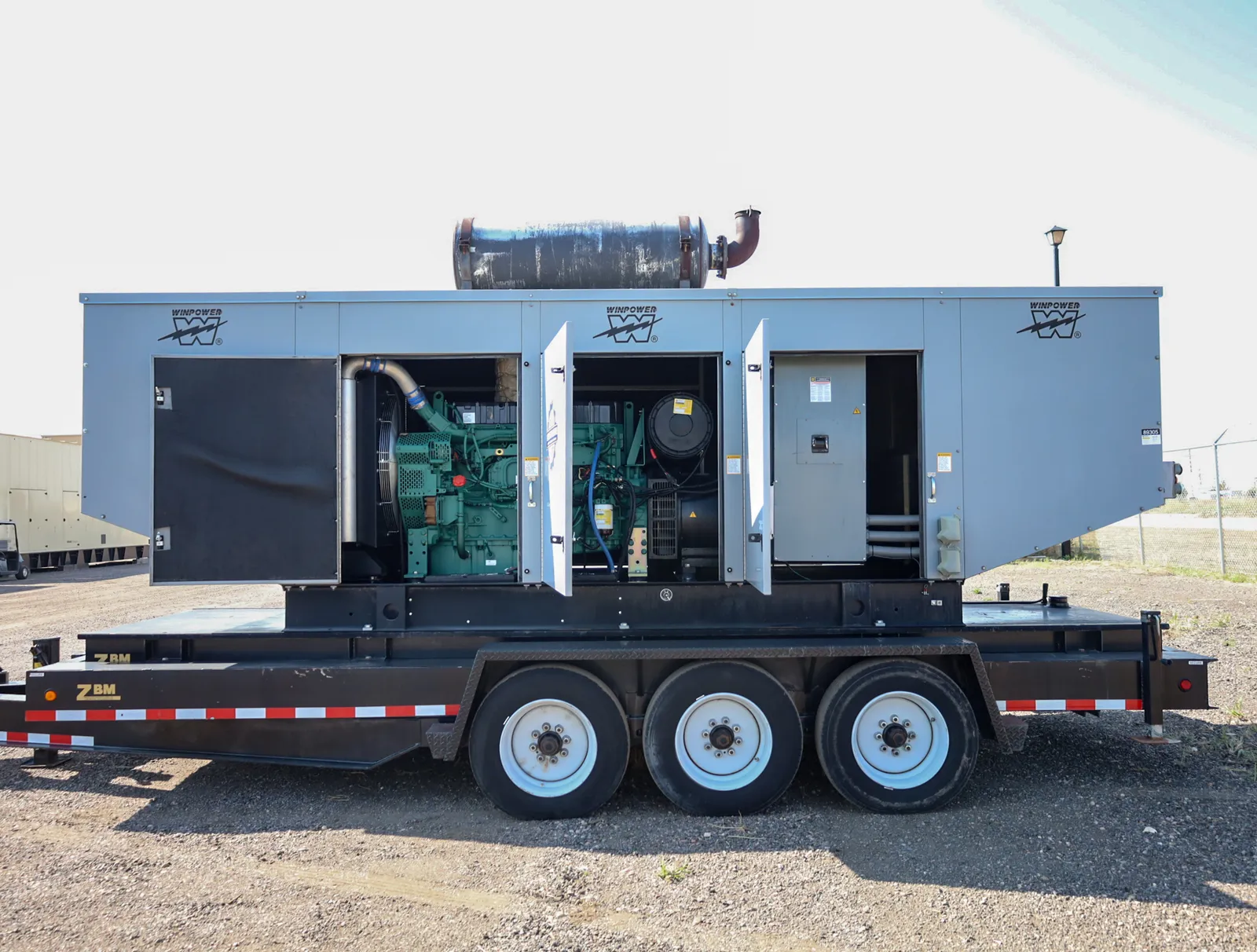 Used Winpower 400kW Diesel generator. This power unit features a Trailer/SAE enclosure and has approximately 1647 hours of use. It provides Three-Phase power at 277/480v and is ready to ship from our Brighton, Colorado facility.