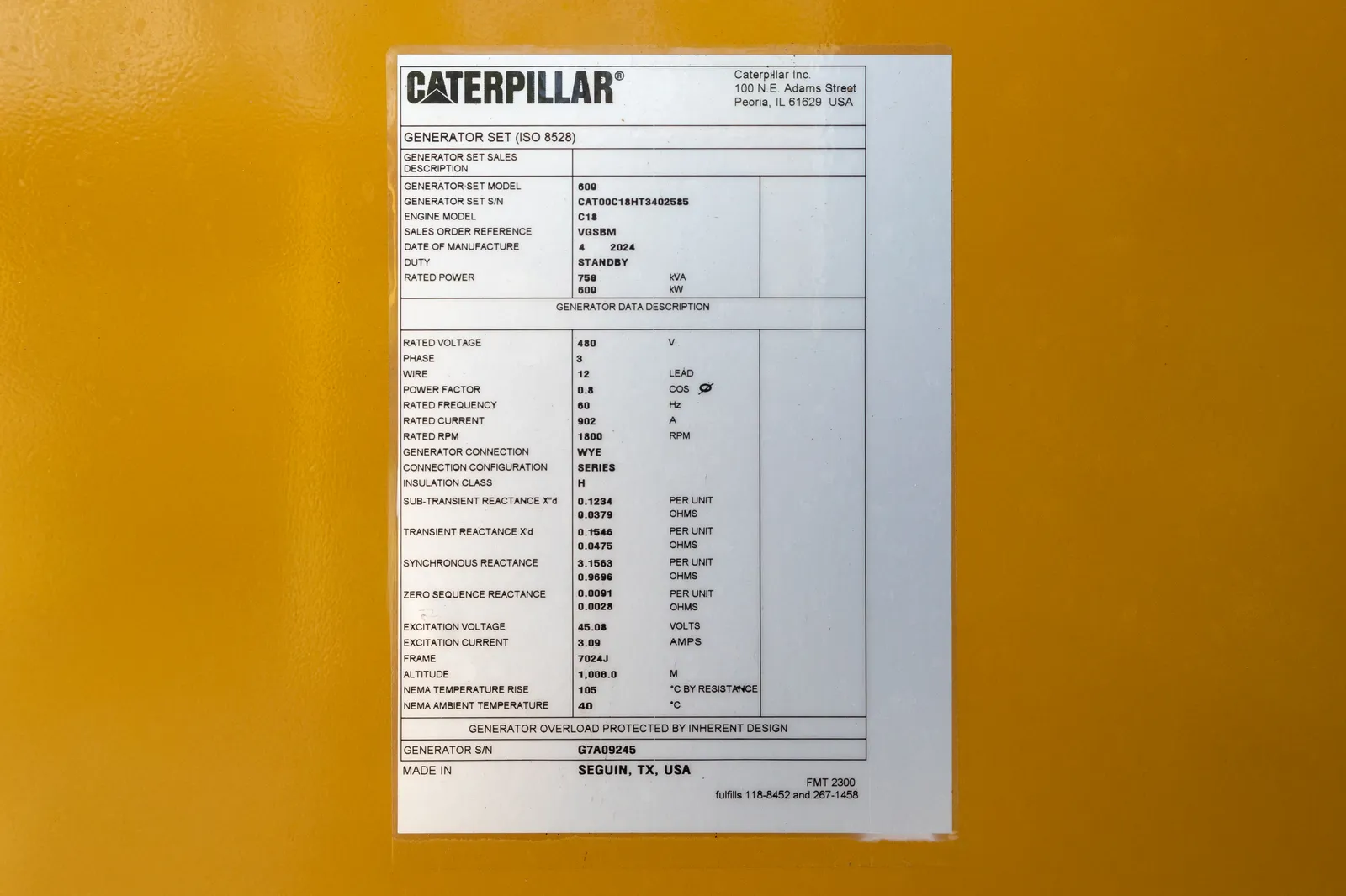 | Serial # | CAT00C18HT3402585 |