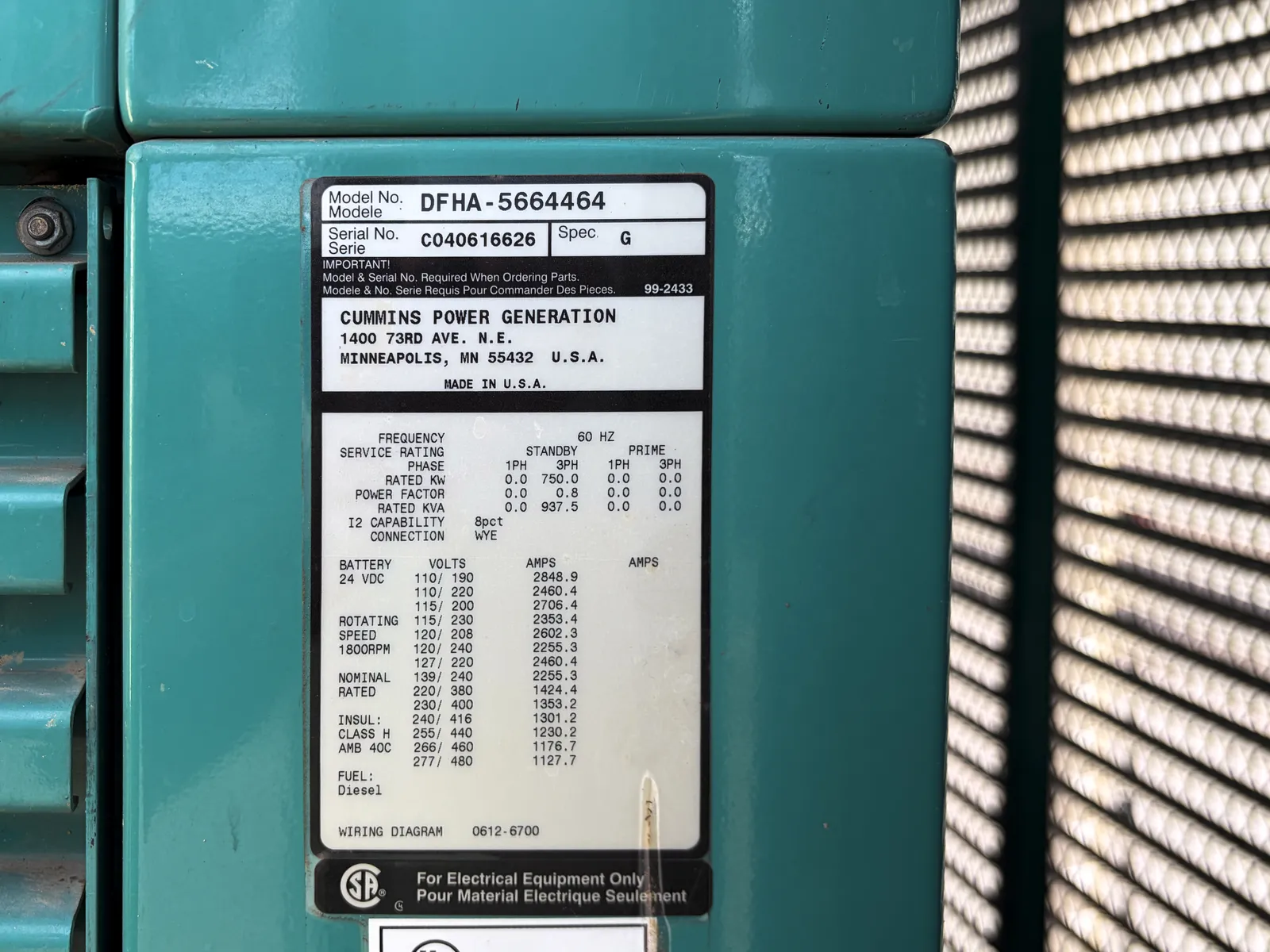 Used Cummins 750kW Diesel generator. This Standby power unit features a Weatherproof enclosure and has approximately 1059 hours of use. It provides Three-Phase power at 277/480v and will be available for purchase upon completing our 31 Point Inspection Process.